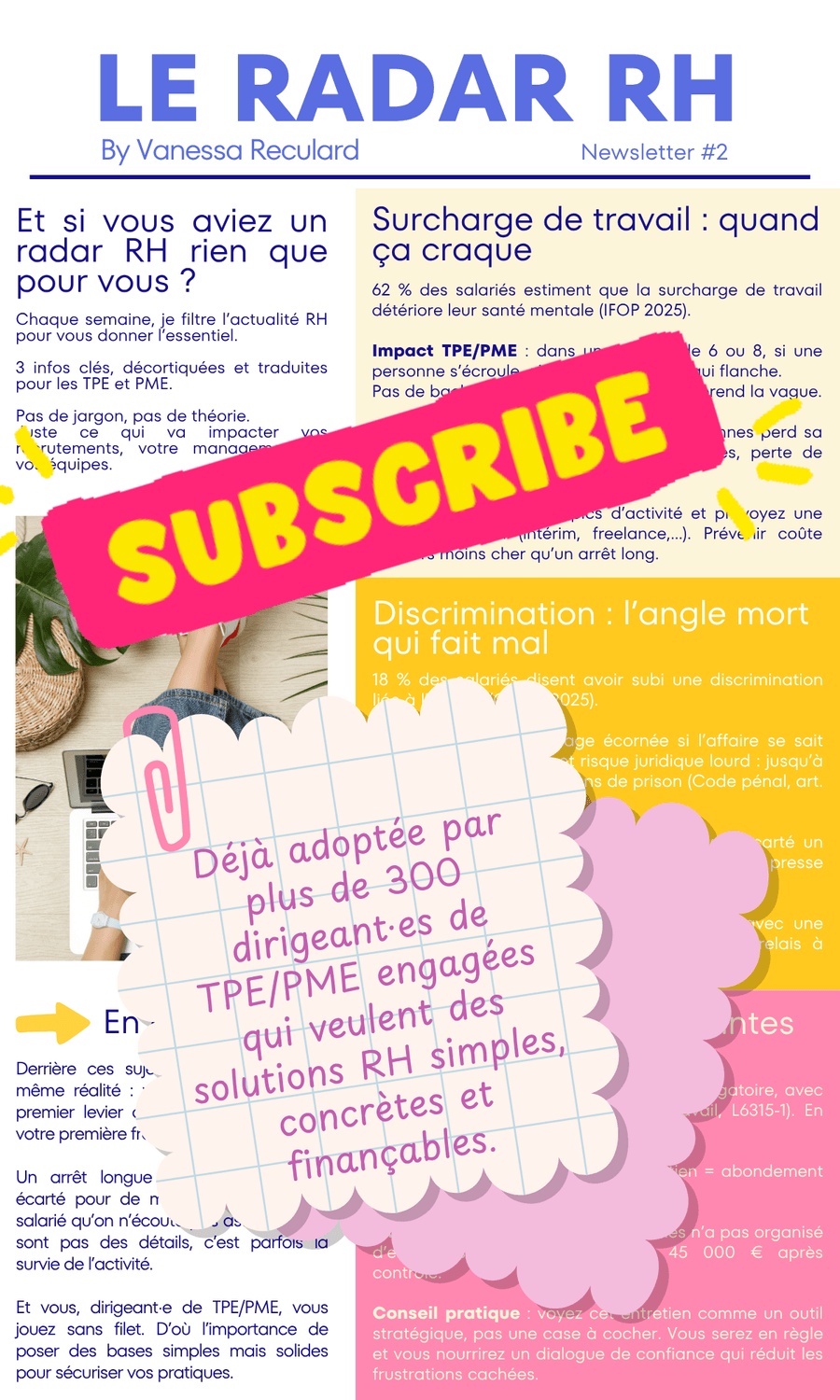 Chaque semaine, je décrypte l’actualité RH et les situations que vivent les dirigeant·es de TPE/PME.